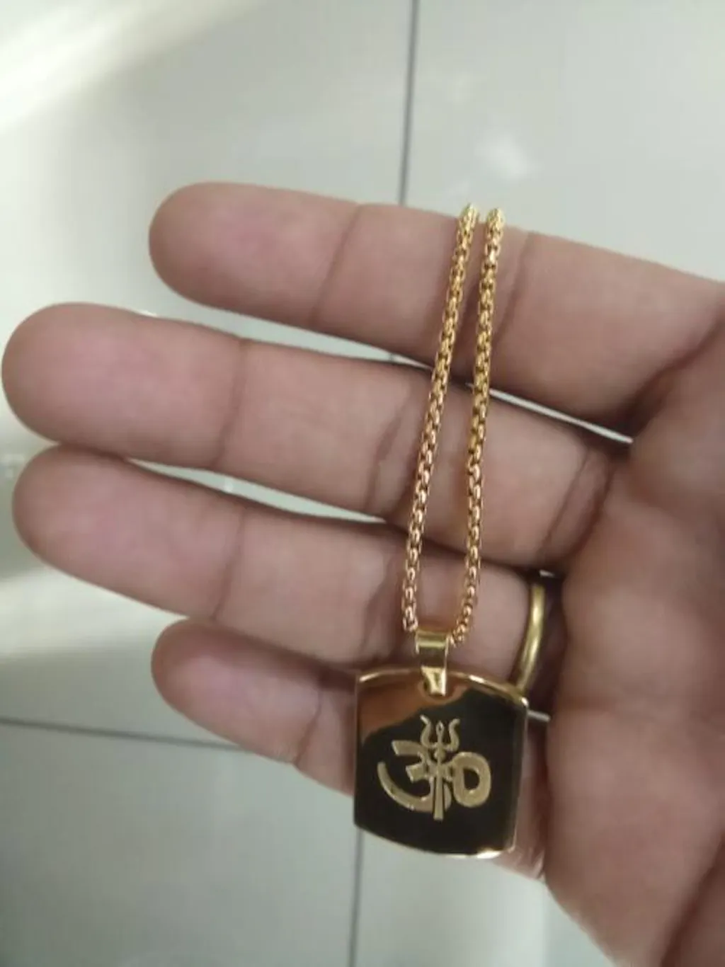 Om Trishul Power Gold Plated Pendant Chain Necklace (24 Inch)